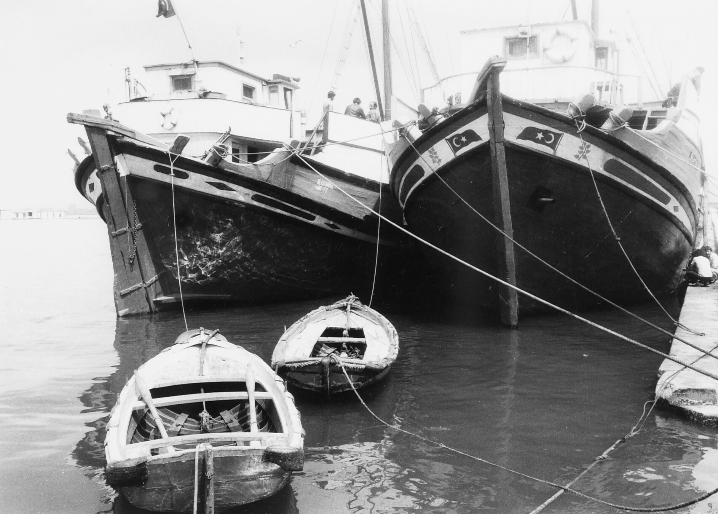 Houten boten in de haven