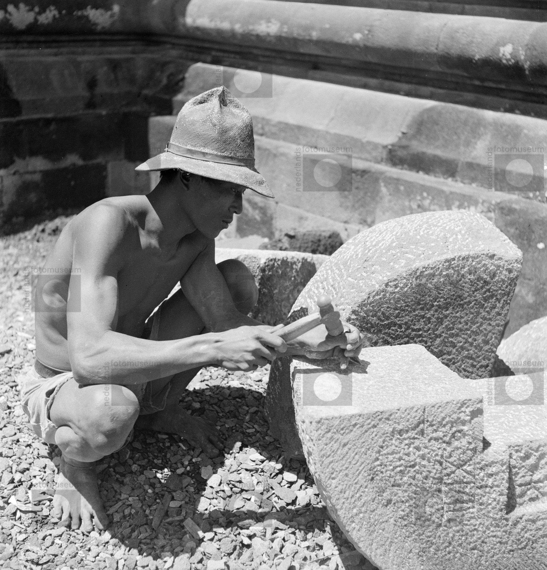 Restauratie-werkzaamheden aan het Hindoeïstisch temp...