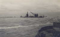 Drijvende kraan bij het sluitgat op De Vlieter, mei ...