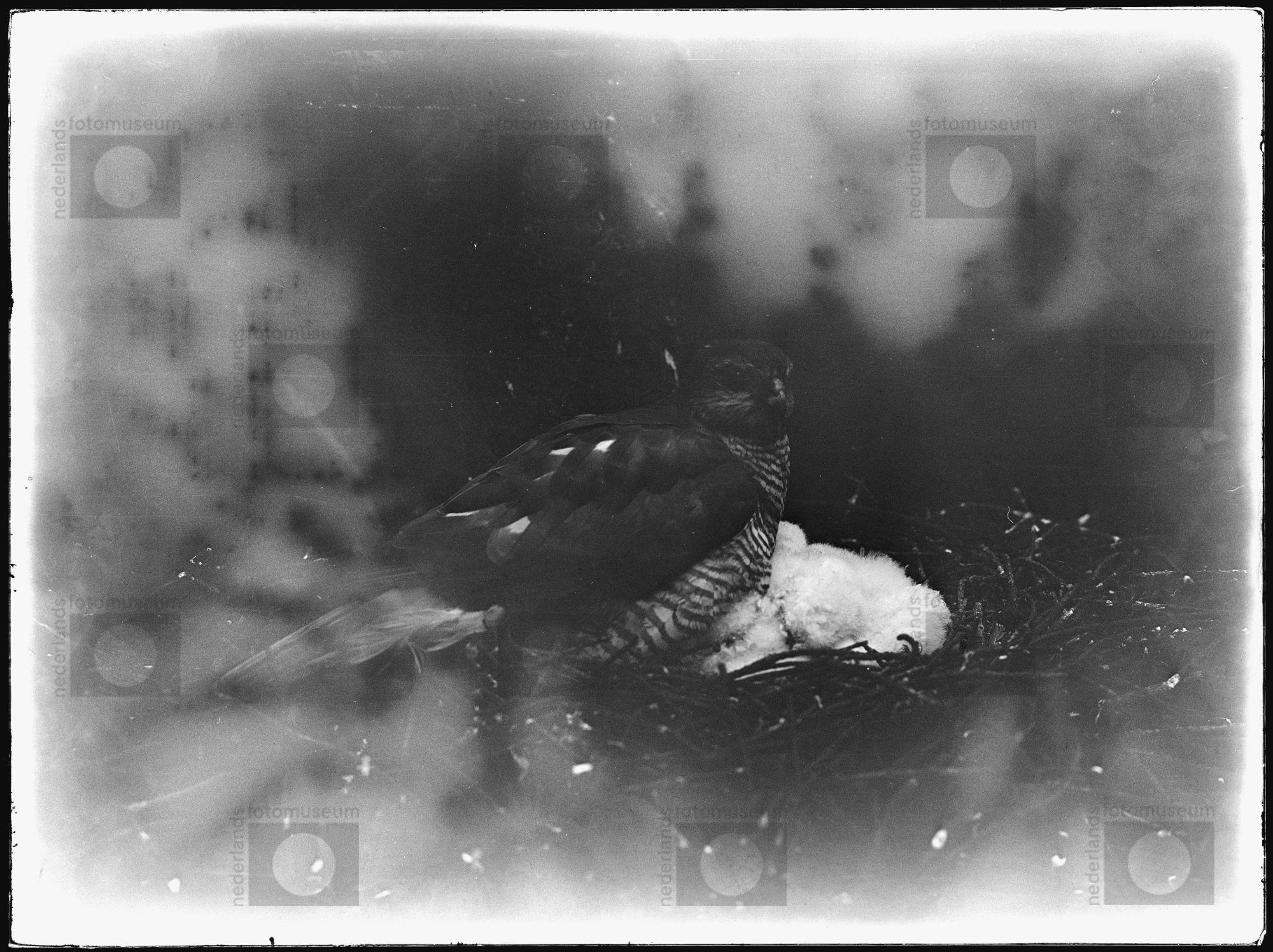 Vrouwtje Sperwer bij jongen in nest, De Steeg (1911-13)