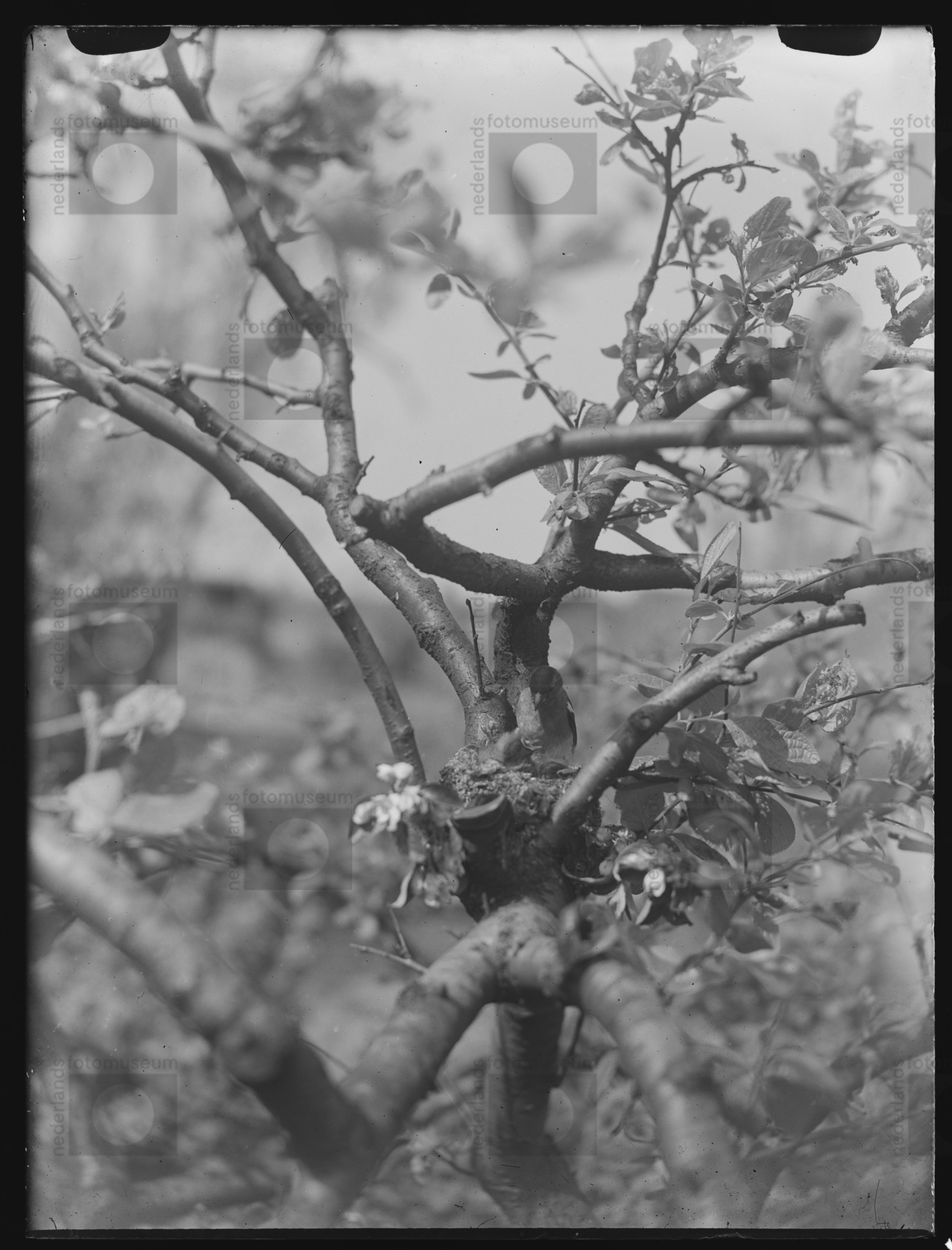 Vrouwtje Vink bij nest met jongen, Aerdenhout (1949)
