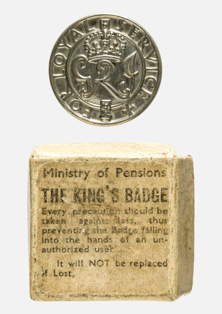 Zilverkleurige reversspeld (King's Badge) in origine...