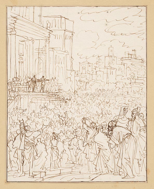Bij het paleis van Pilatus wordt Jezus aan het volk ...