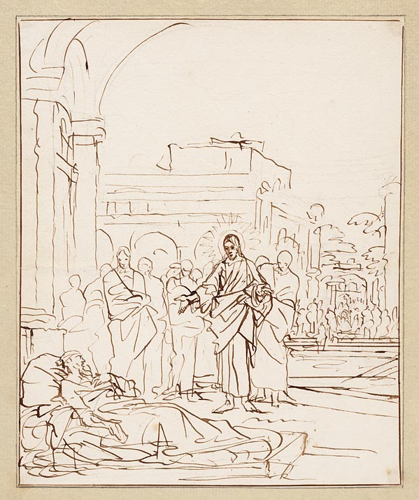 Jezus, gevolgd door zijn discipelen, ontmoet de tien...
