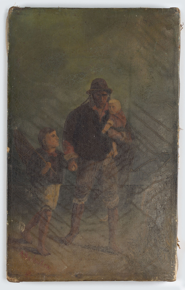 Zinkje van metaal op ondergrond van hout, ca. 1950