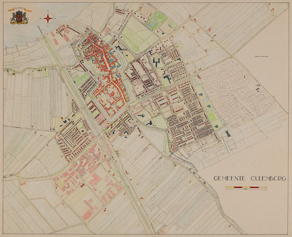 Plattegrond op papier van de gemeente Culemborg met ...