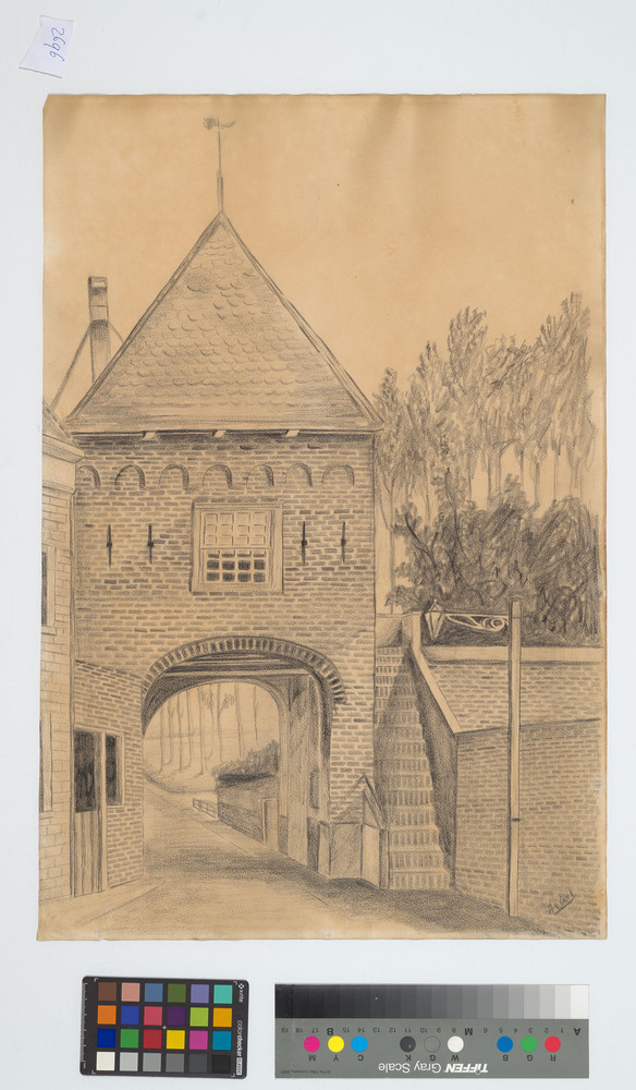 Tekening in zwart krijt, voorstellende de Slotpoort ...