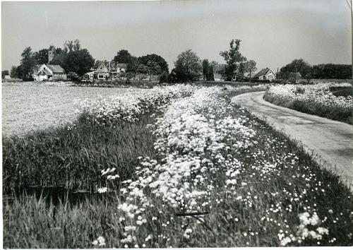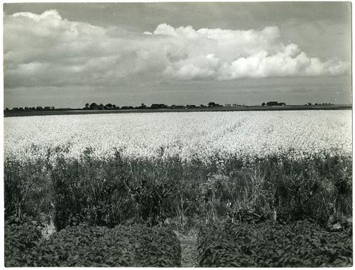 Foto in zwart-wit van bloeiend koolzaad door J.D. de...