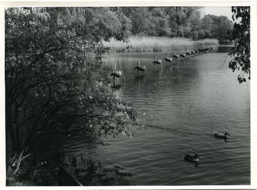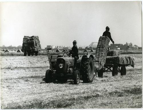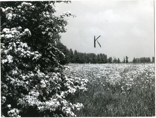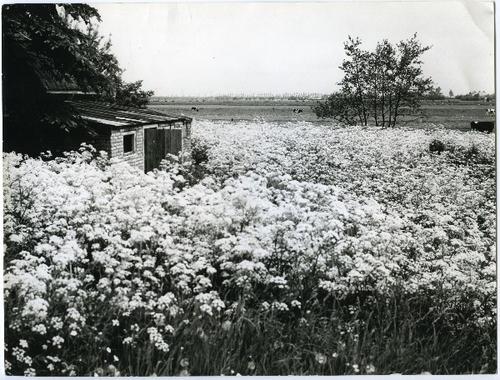 Foto in zwart-wit van ondergelopen hooiland door J.D...