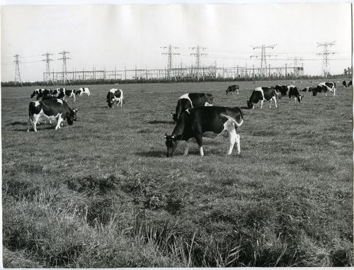 Foto in zwart-wit van een stelpboerderij met koeien ...