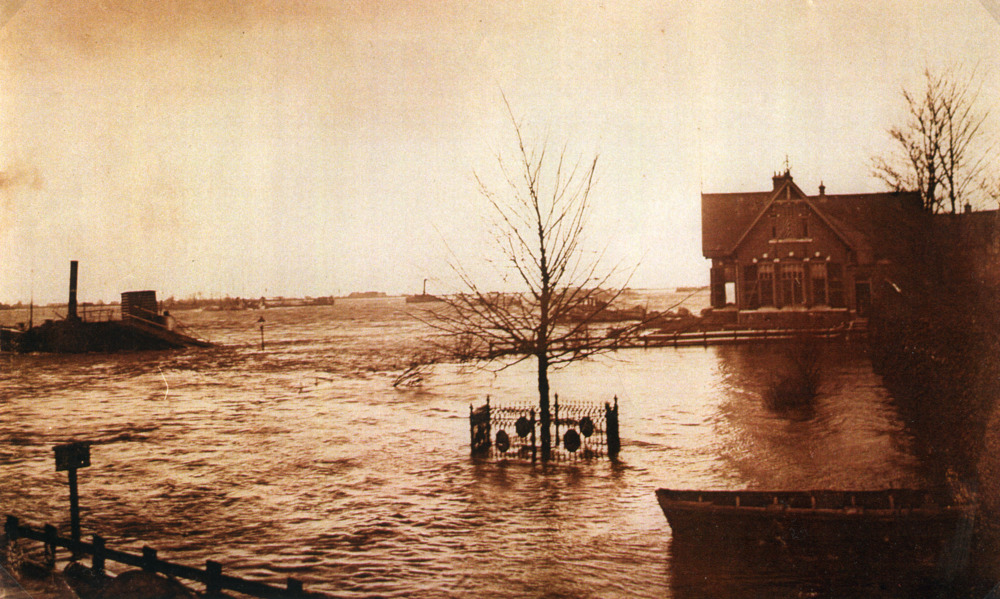 Zwart-wit foto van het hoogwater Wilhelminaplein in ...