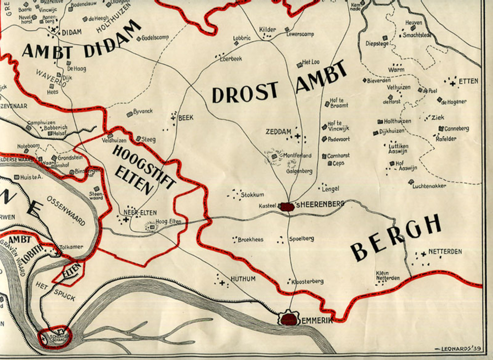 Historische kaart van papier van de Kleefse gebieden...