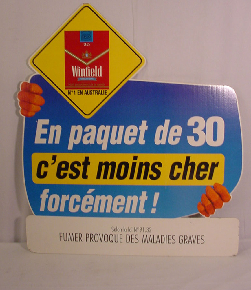Reclamebord van karton voor het merk Winfield (moins...