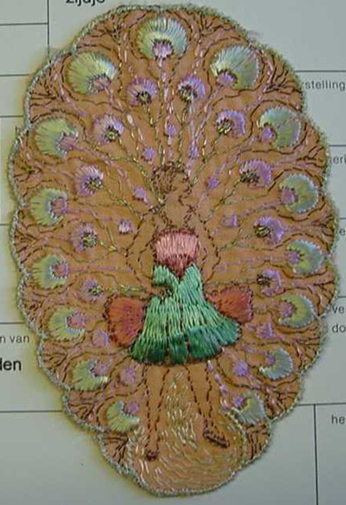 Zijdje 'Pauwenmeisje' textiel uitgegeven door Turmac...