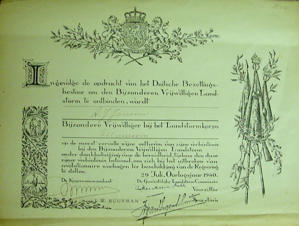 Ontslagbewijs Bijzondere Vrijwillige Landstorm van d...