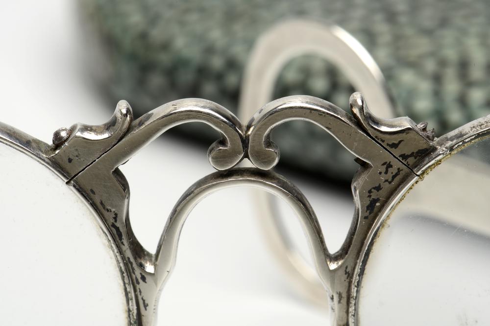 Zilveren bril in etui