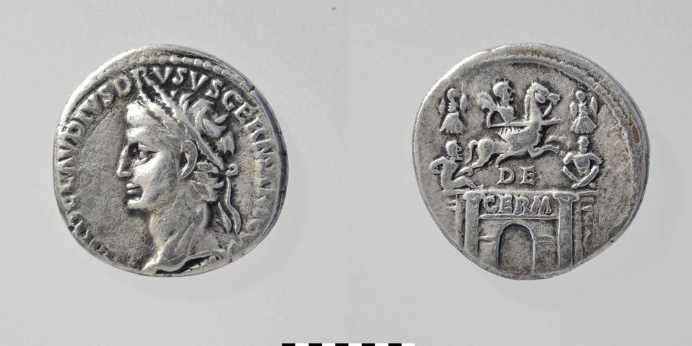 Denarius van Claudius, munt van zilver uit de Romein...
