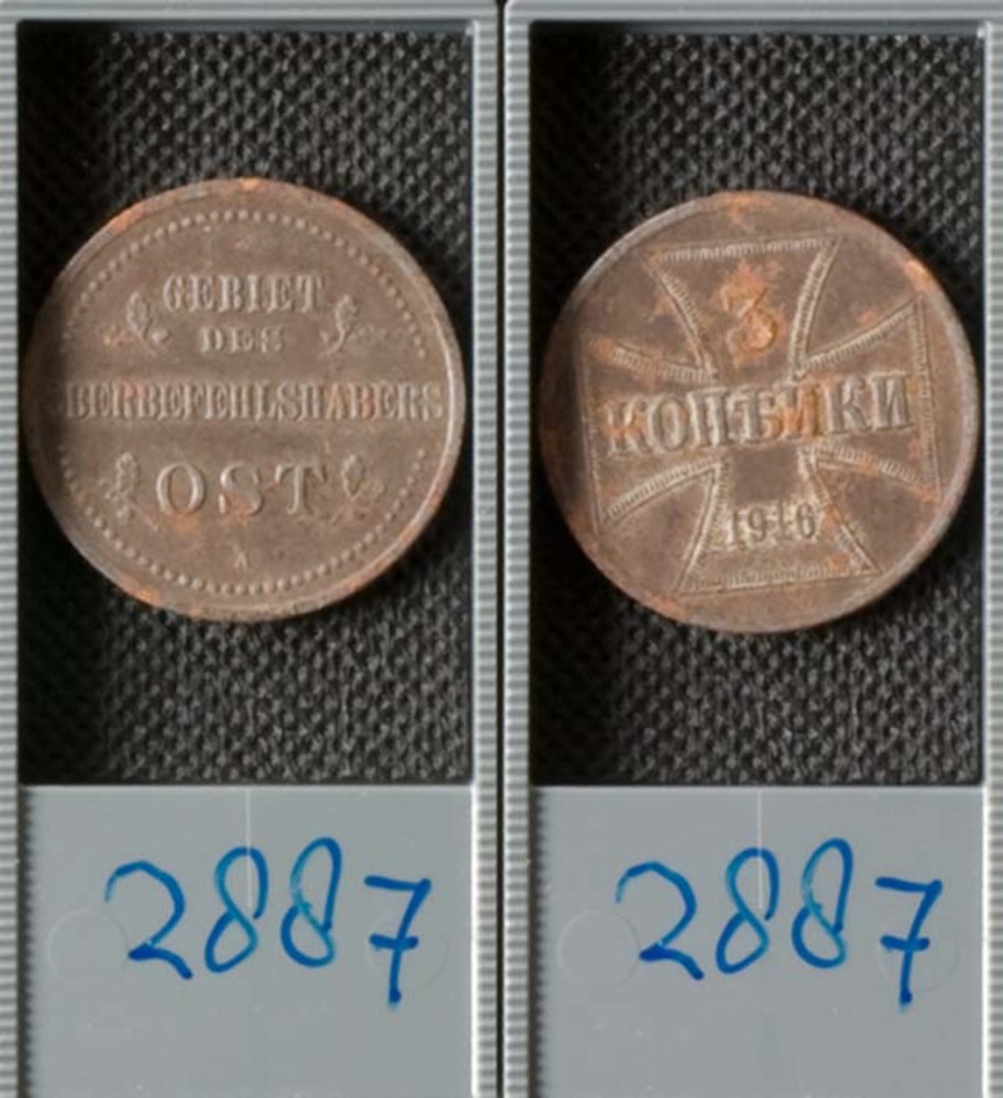 Drie kopeken als belegeringsmunt voor bezet Rusland