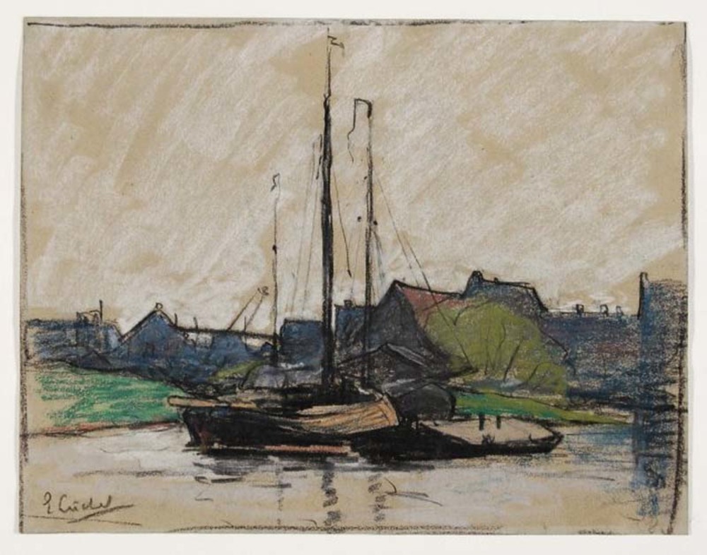 Zeilboten bij huizen