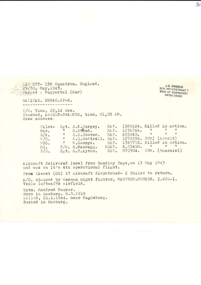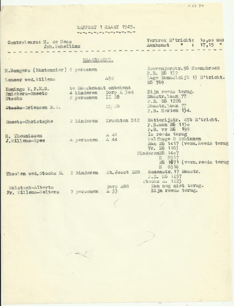Rapport 1 maart 1945 bezoek Maasbracht door J. Schel...