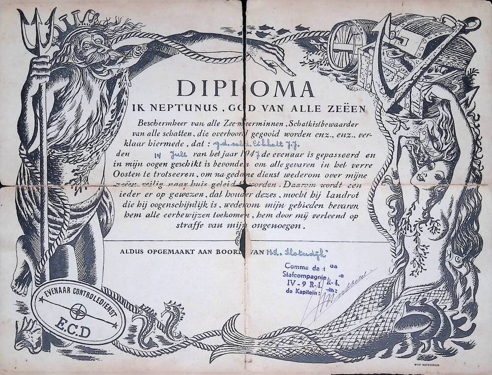 Diploma, Ik Neptunus, God van alle zeëen op naam van...
