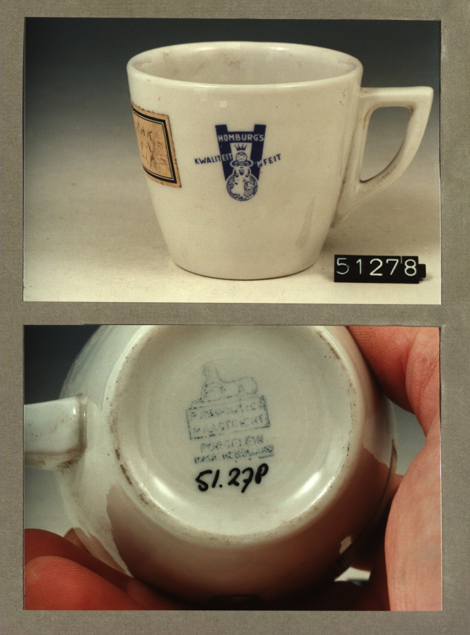 Kop met opschrift, model P2 met decor Homburg's kwal...