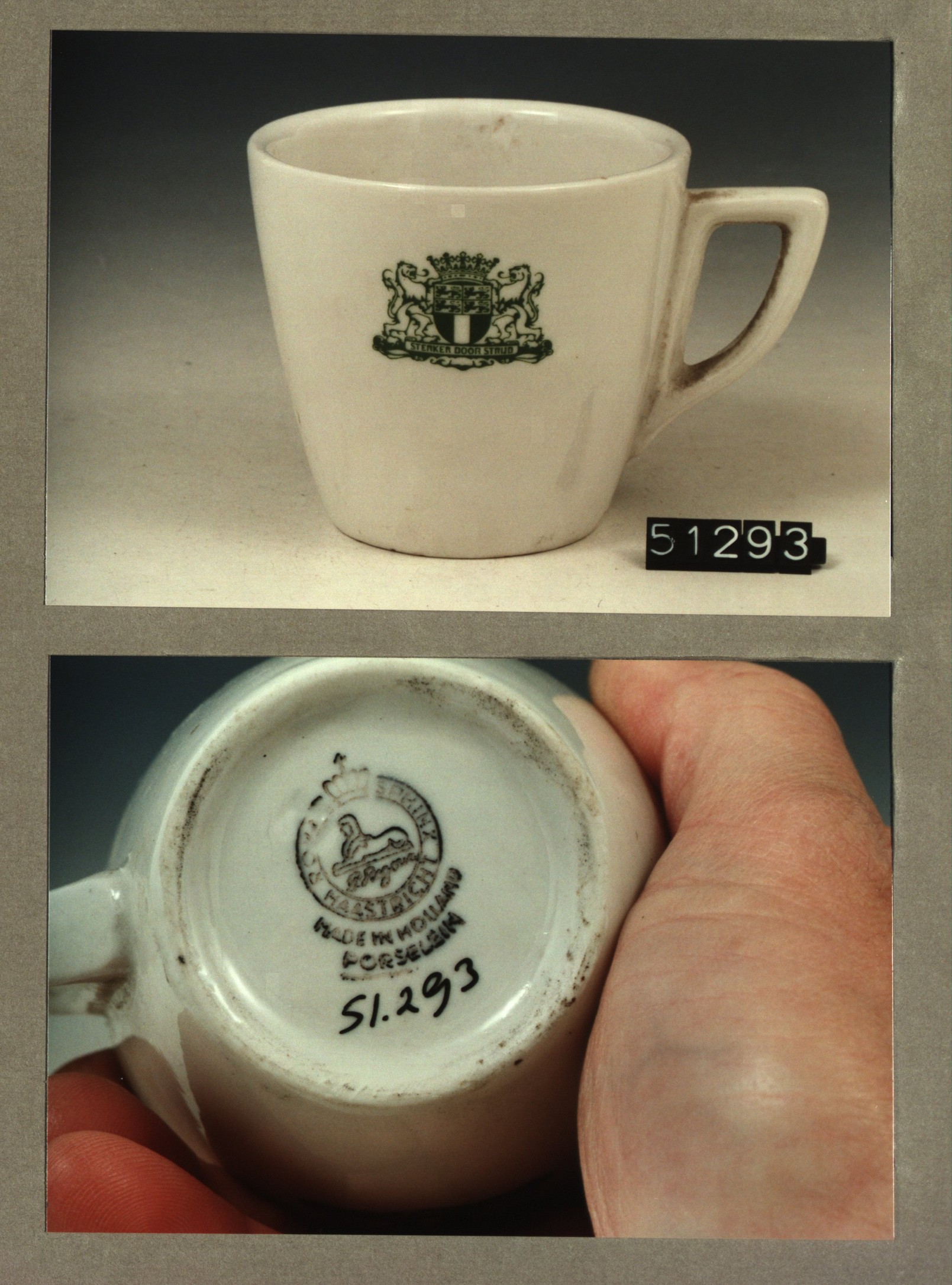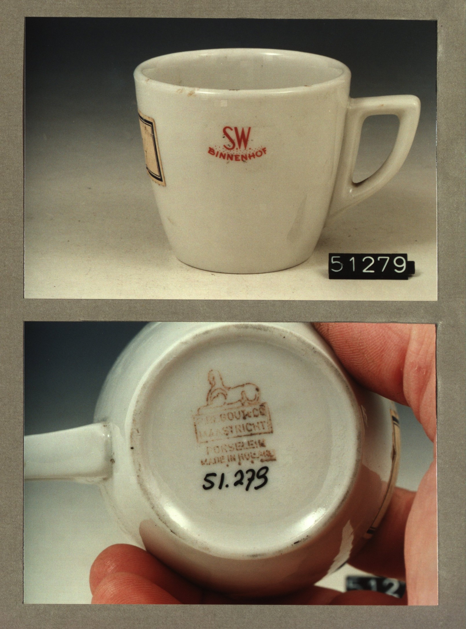 Kop met opschrift, model P2 met decor Binnenhof S.W.