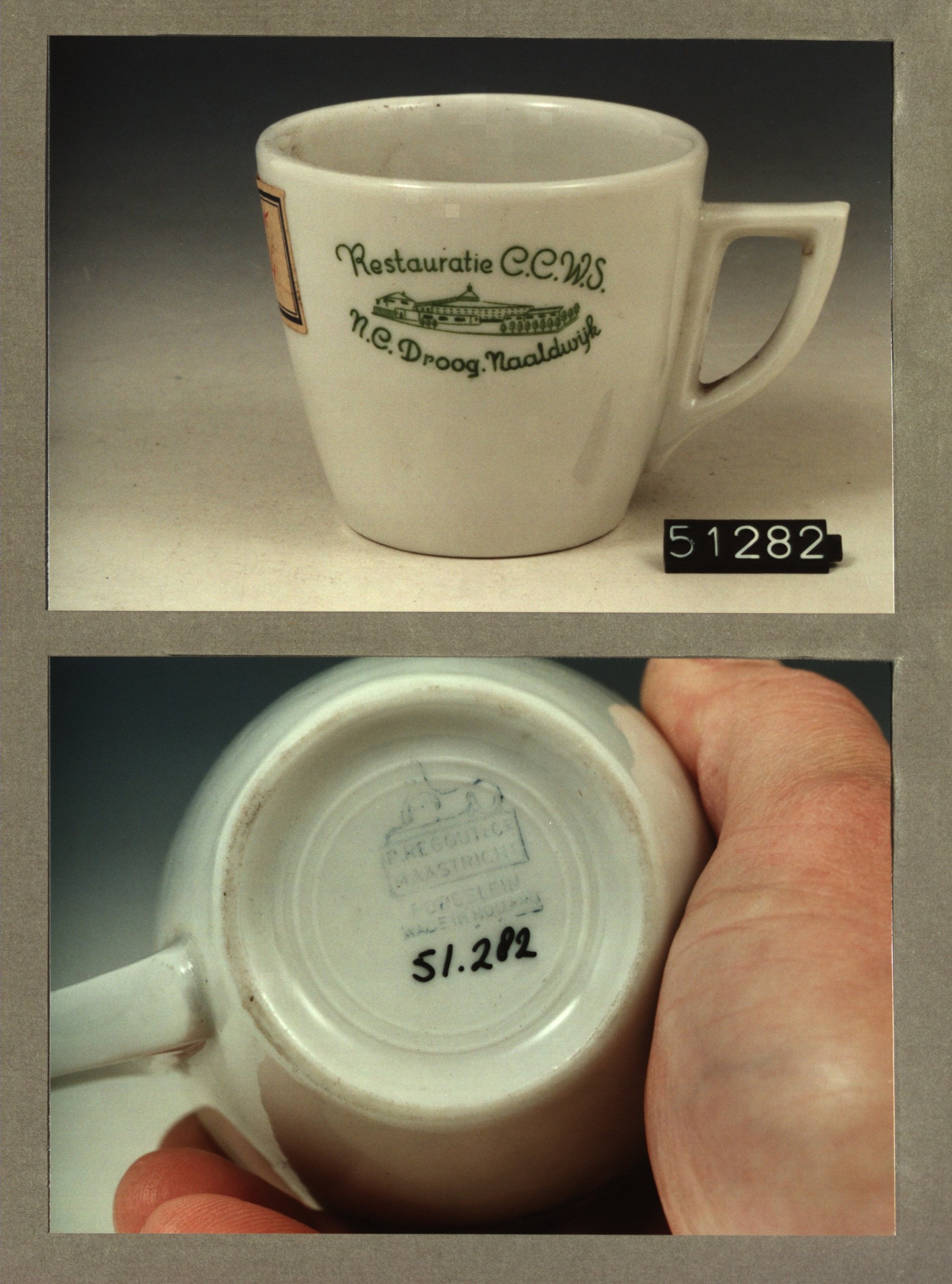 Kop met opschrift, model P2 met decor C.C.W.S.restau...