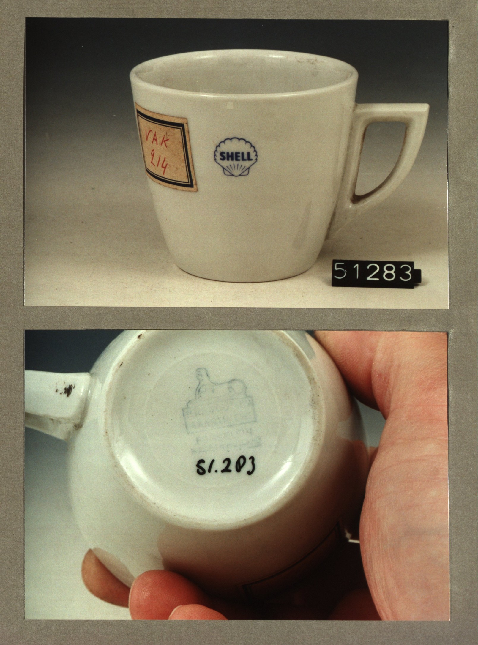Kop met opschrift, model P met decor Shell