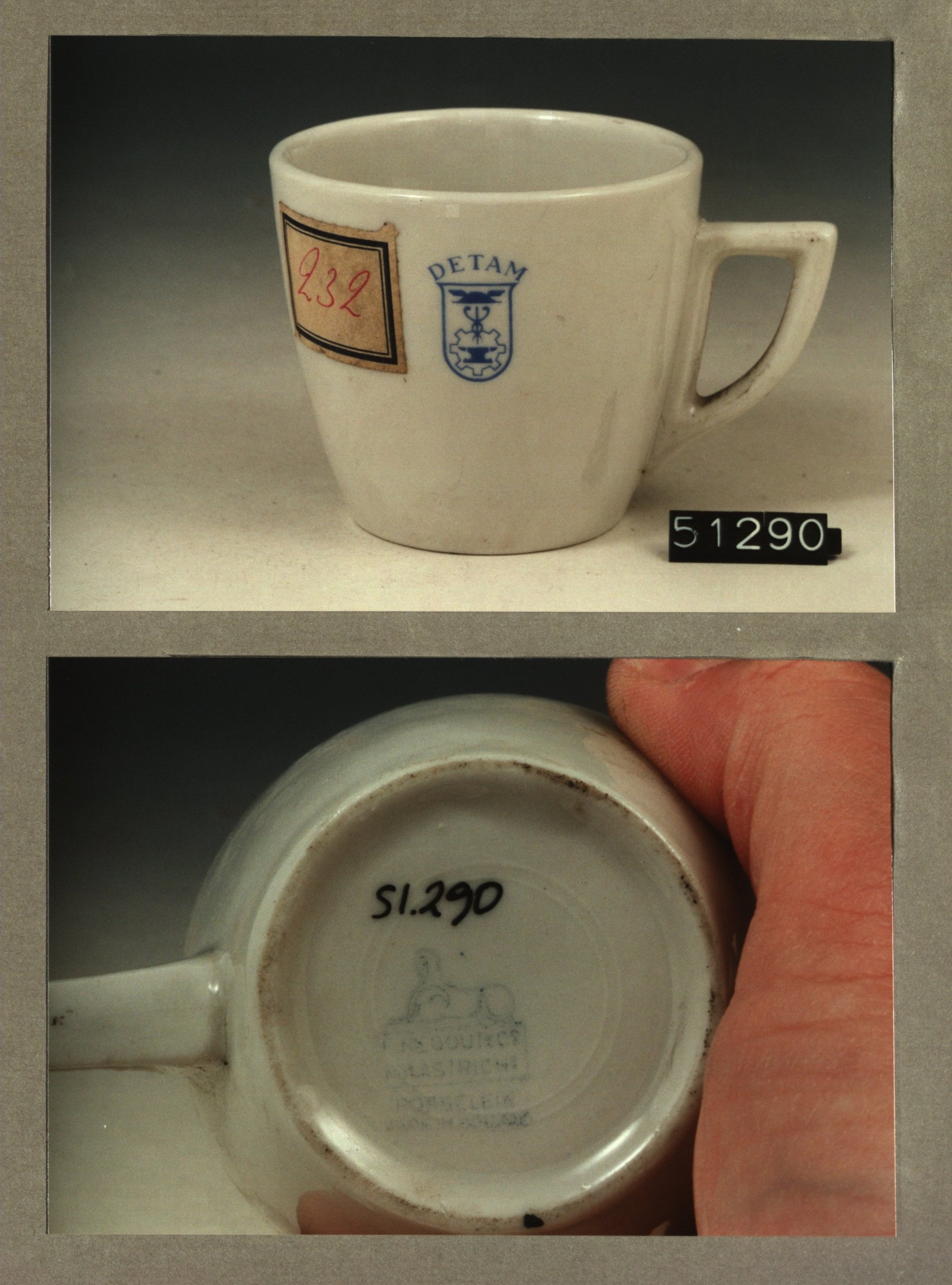 Kop met opschrift, model P met decor Detam