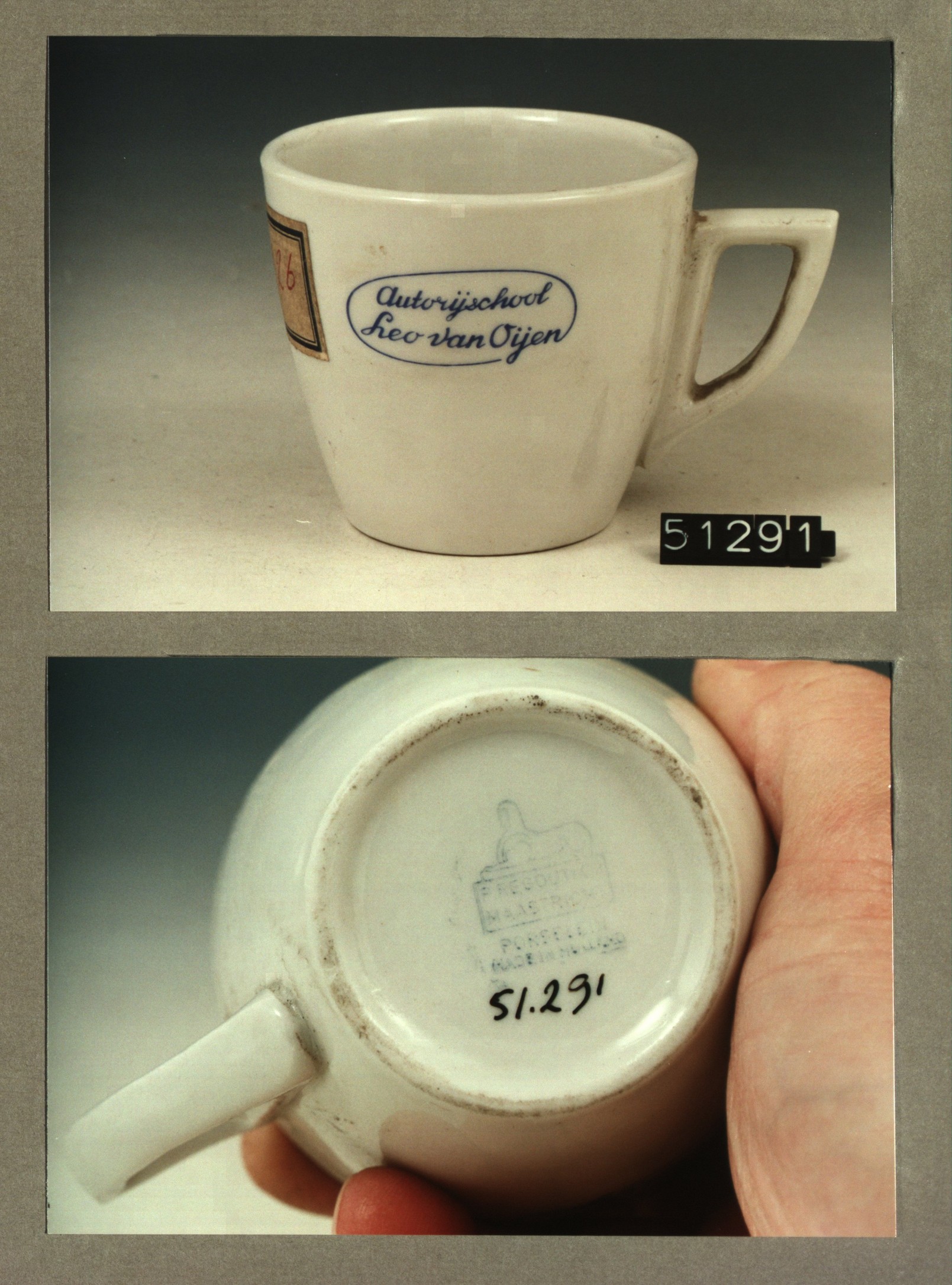 Kop met opschrift, model P met decor Maasoord psychi...