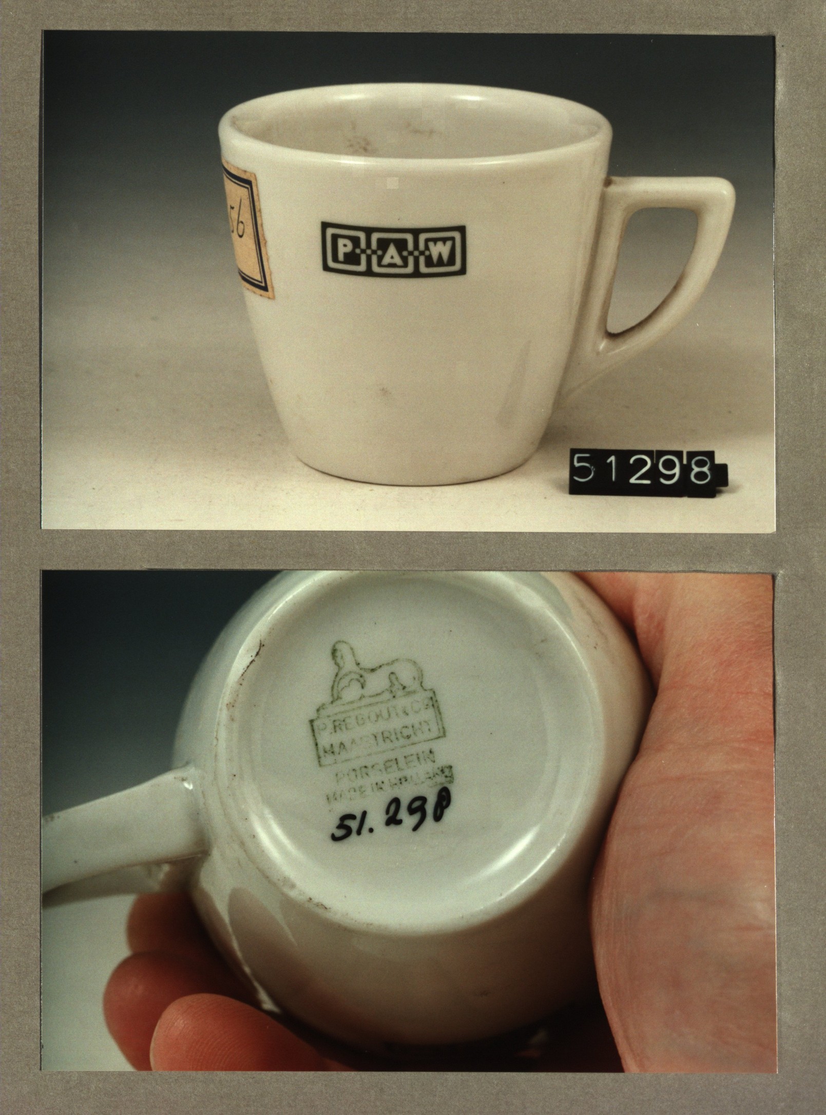 Kop met opschrift, model P met decor PAW proefstatio...