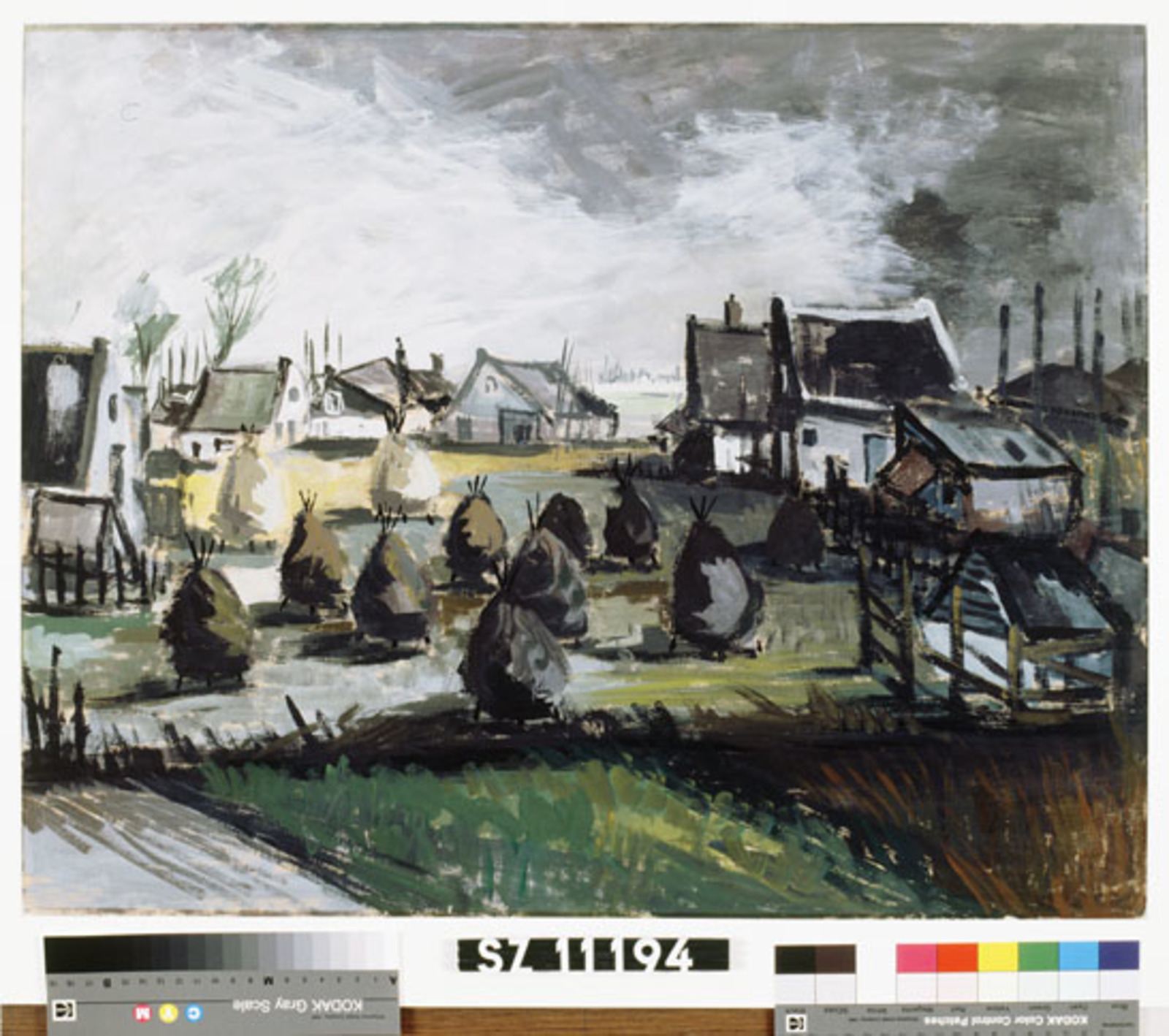 Dorpsgezicht (recto); stilleven van boeket bloemen e...