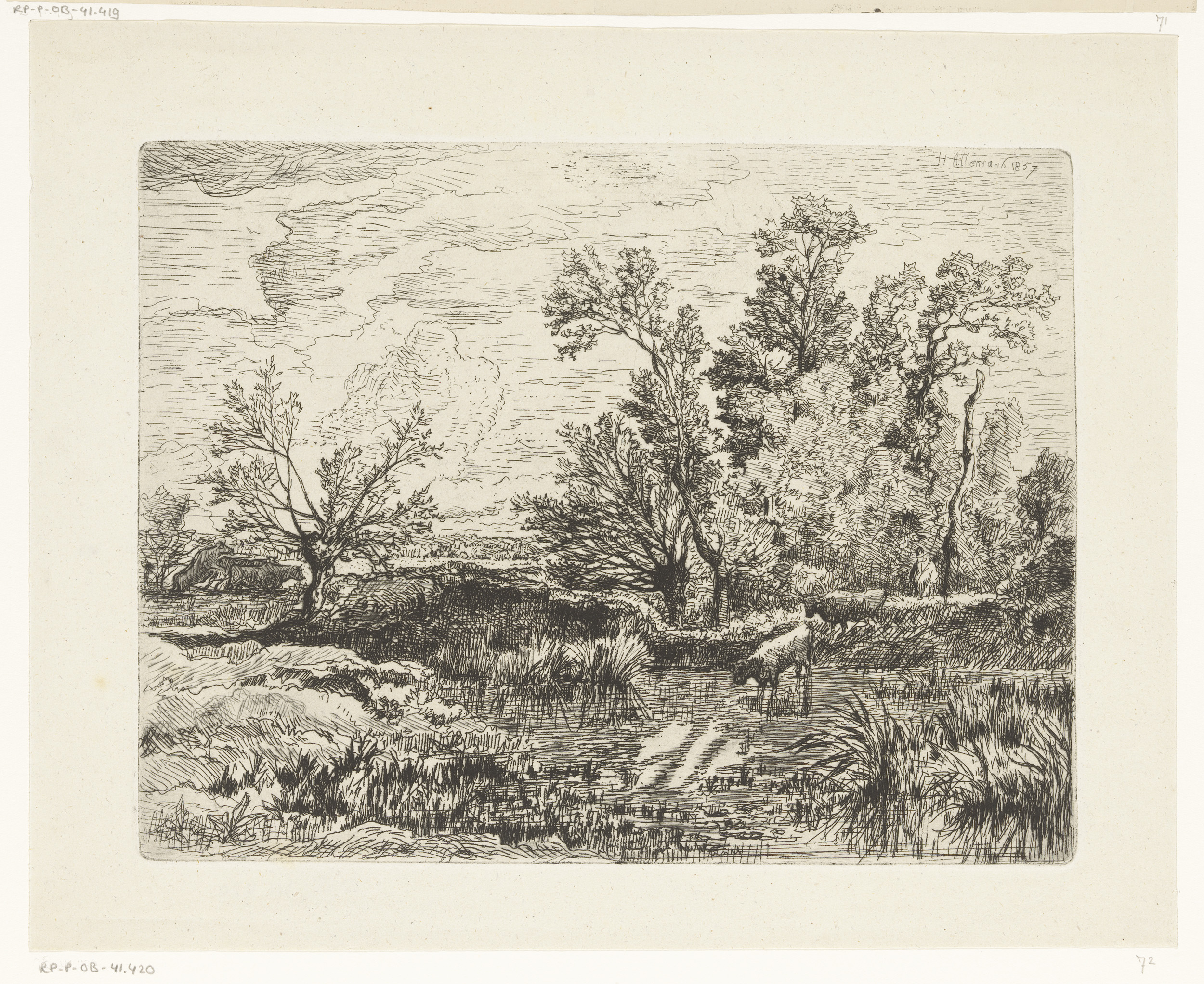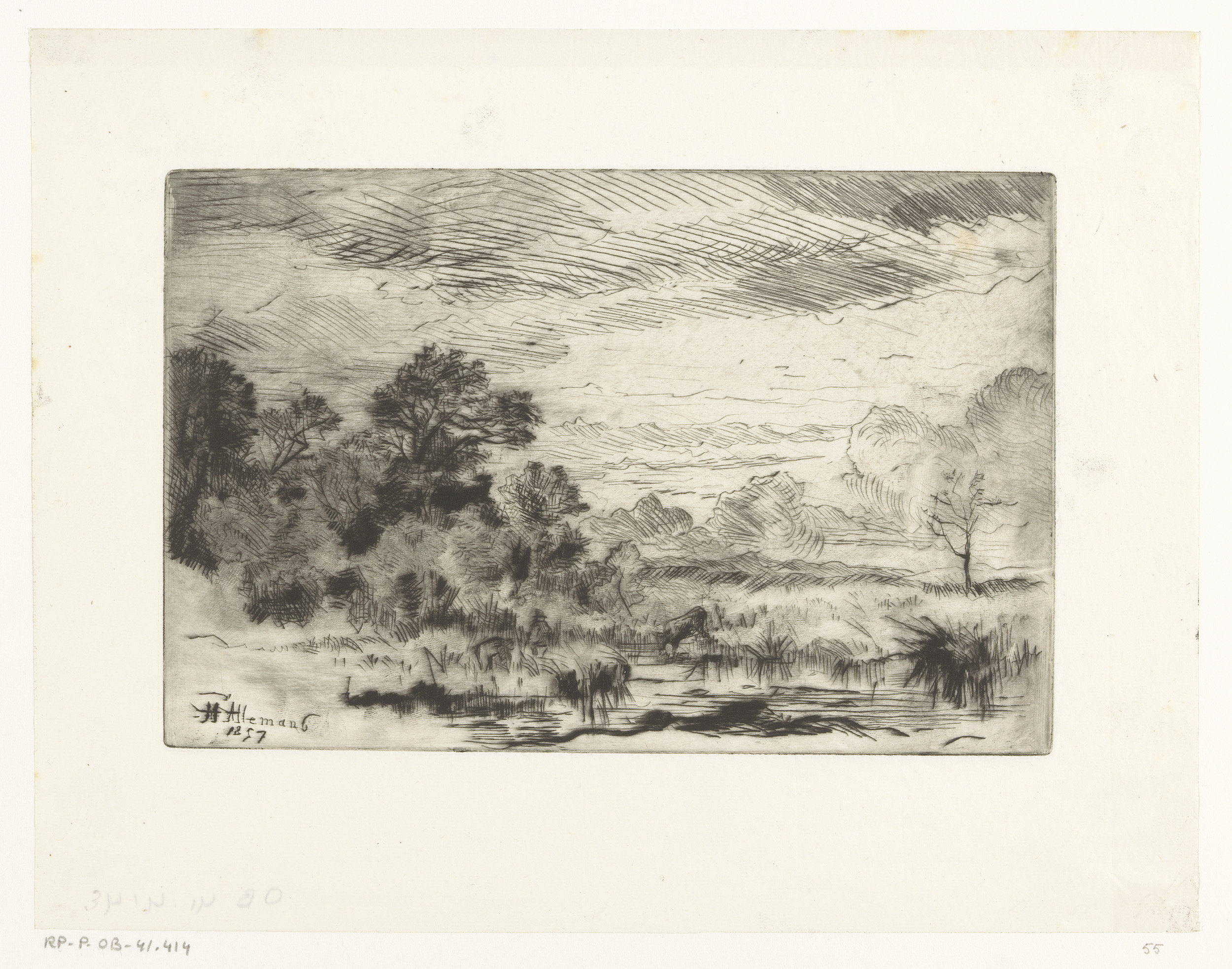 Landschap met een drinkende koe aan de waterkant