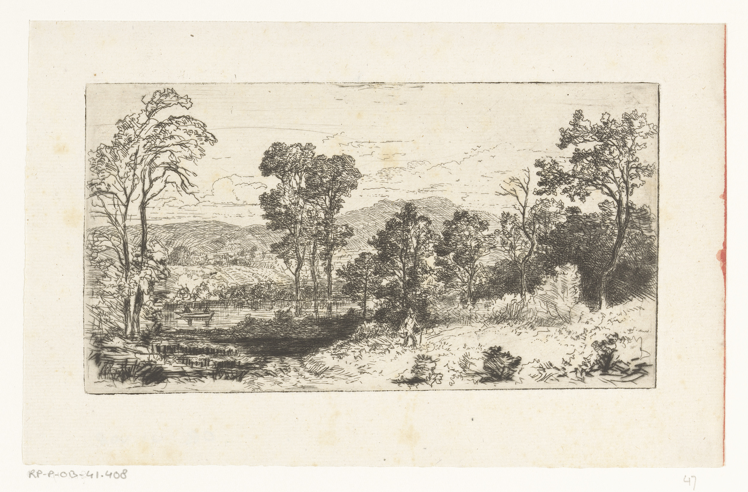 Landschap met ruiter langs een rivier