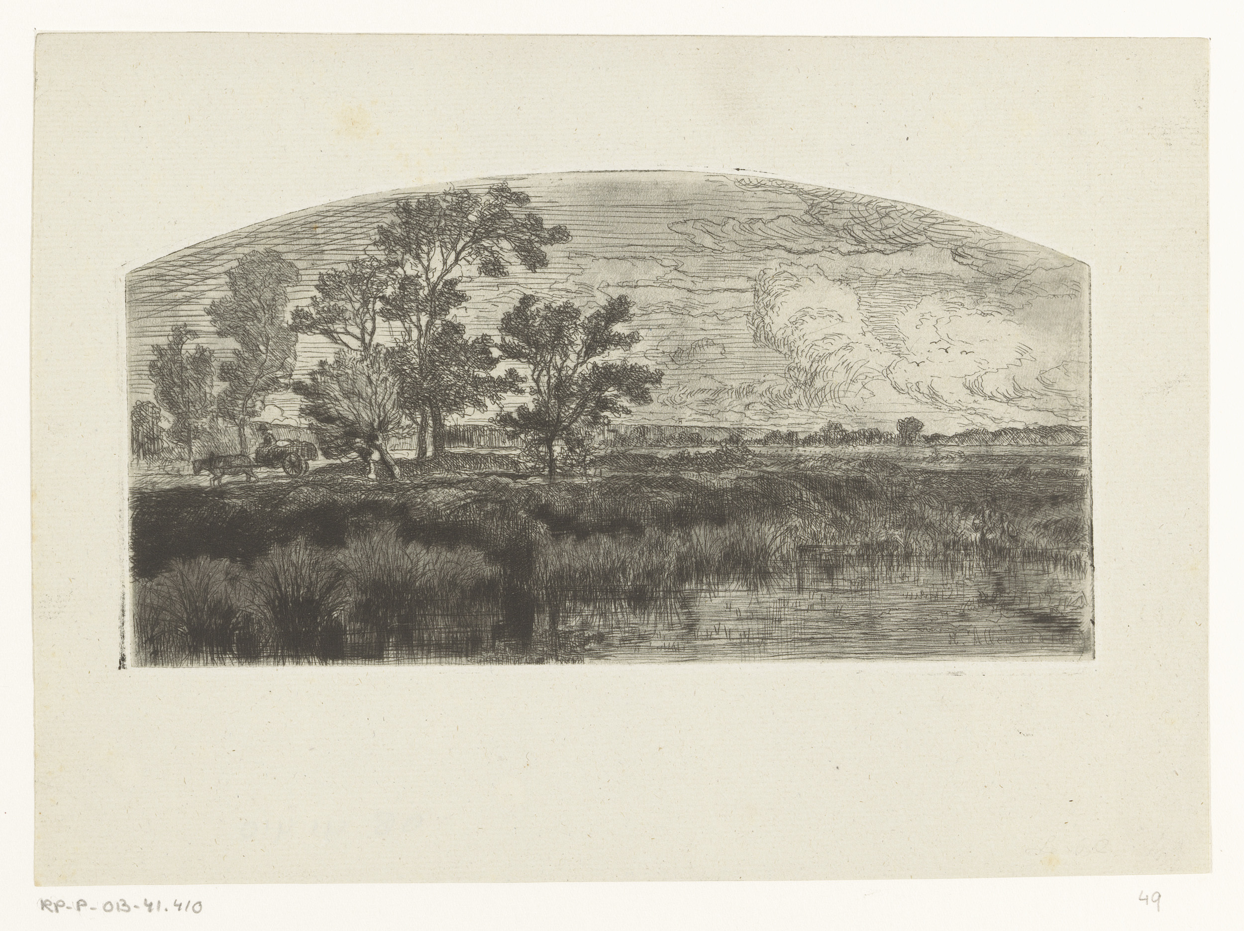 Moeraslandschap met een paardenkar