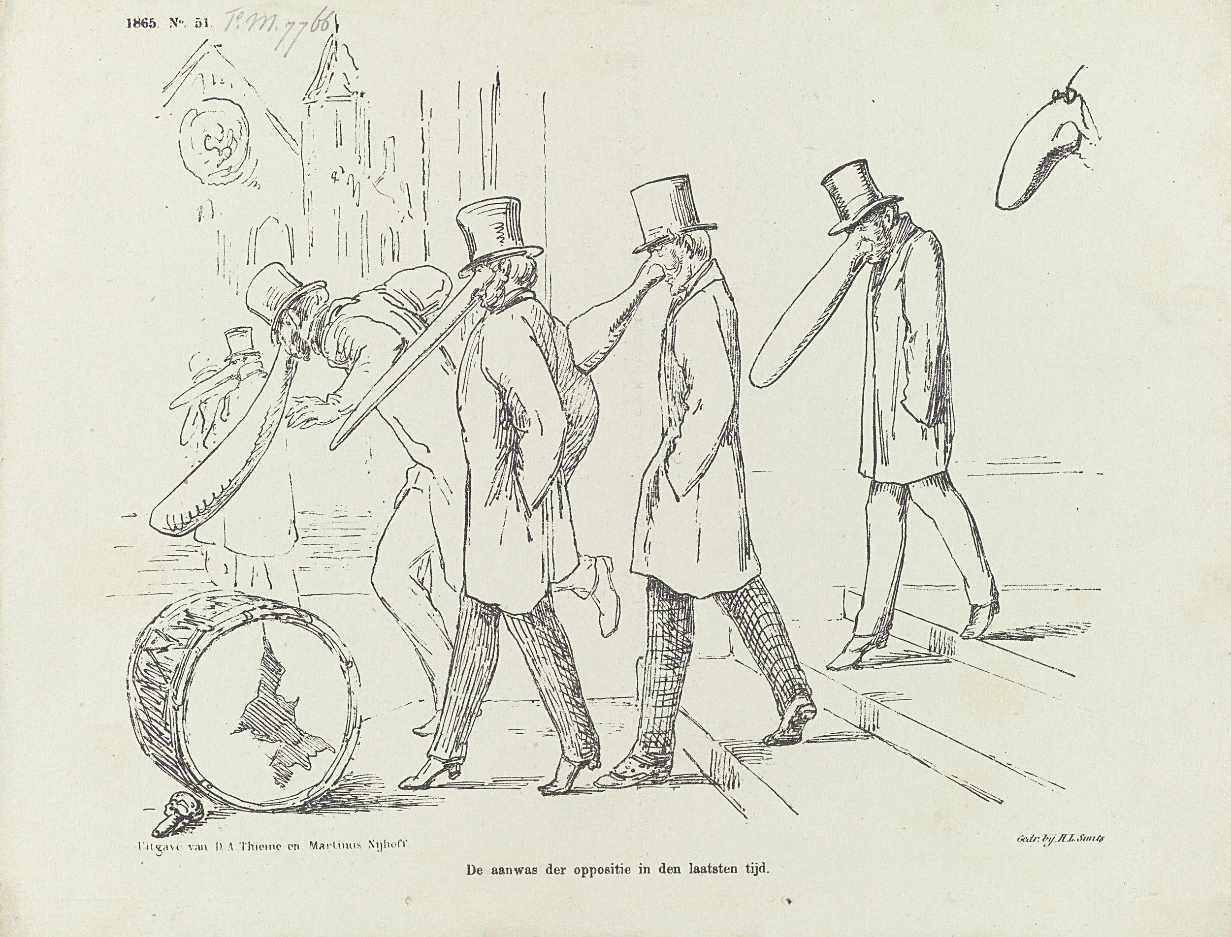 Spotprent op de leden van de oppostie met grote neuz...