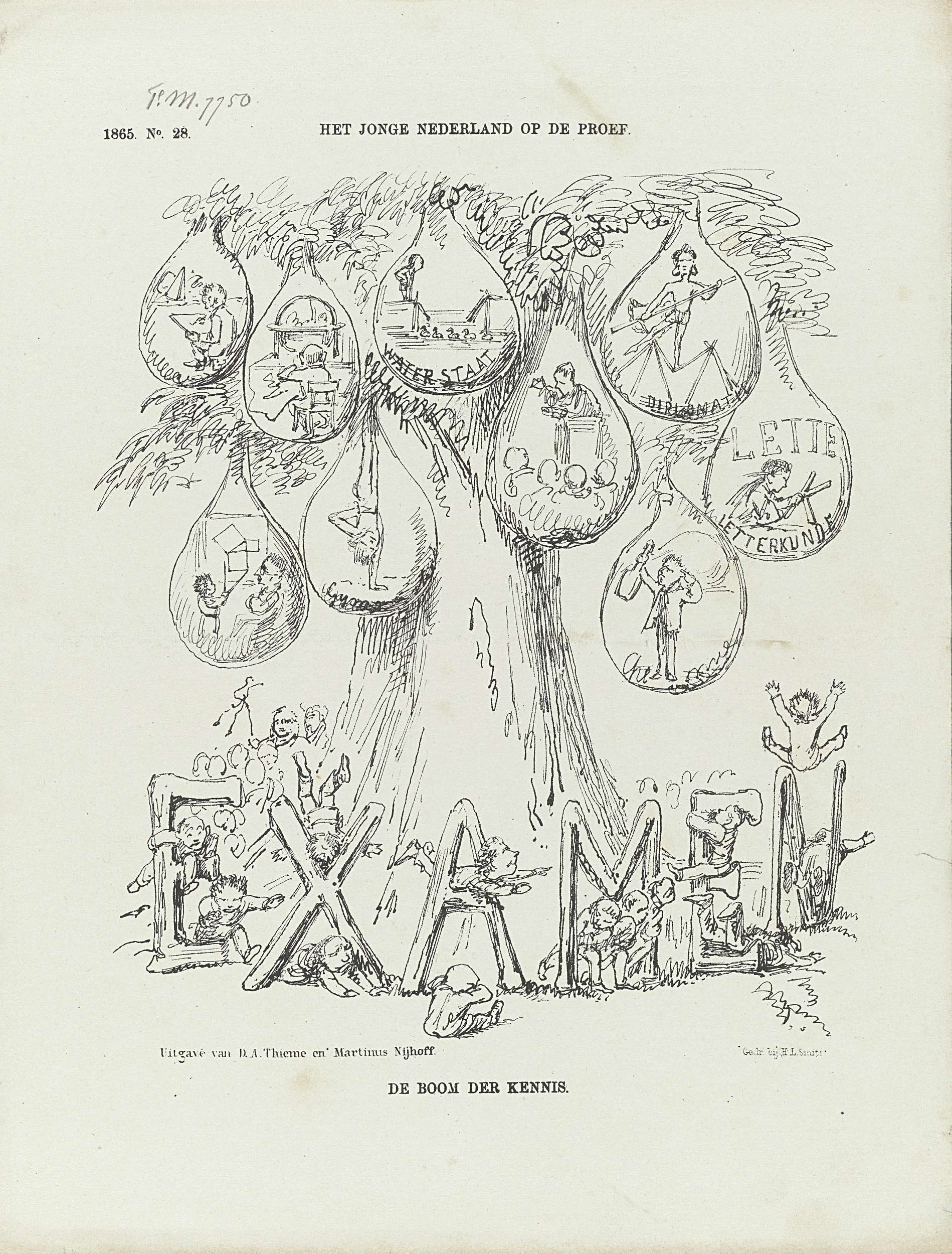 Spotprent over de schoolexamens, 1865