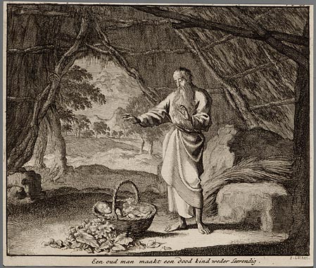 Een oud man maakt een dood kind weder leevendig