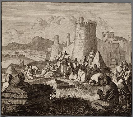 Godsdienstige byeenkomst op een begraafplaats