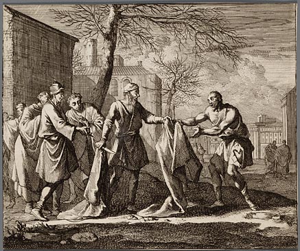 Martinus snydt zijnen rok in tween en geeft´er eenen...