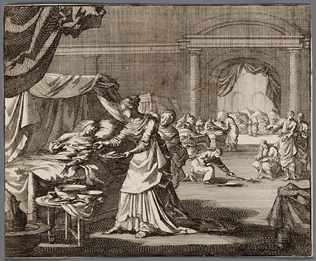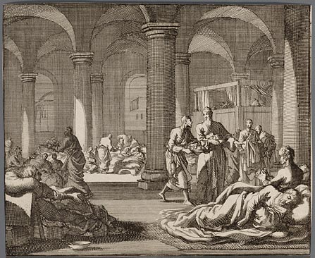 De keijzerin Flacilla bedient de armen in ´t gasthuijs