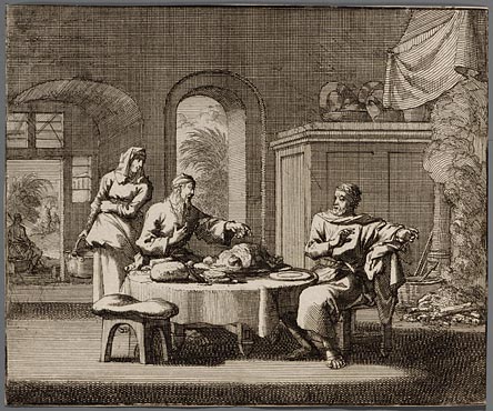Spiridion zet zijnen gast zwijnen vleesch voor