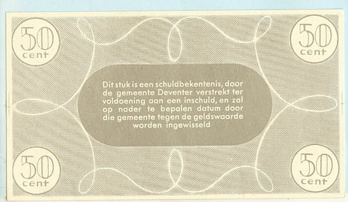 Noodgeld van de gemeente Deventer, goed voor vijftig...