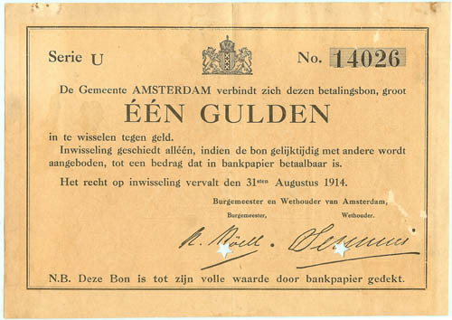 Noodgeld van de gemeente Amsterdam, goed voor één gu...