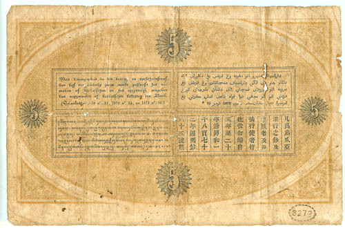 Vijf gulden uitgegeven door de Javaansche bank