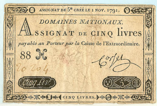 Assignaat, Domaines Nationaux Assignat de cinq livres