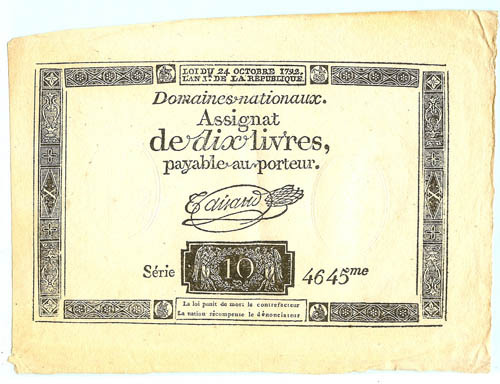 Assignaat, Domaines Nationaux Assignat de dix livres...