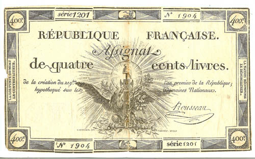 Assignaat, Domaines Nationaux Assignat de quatre cen...
