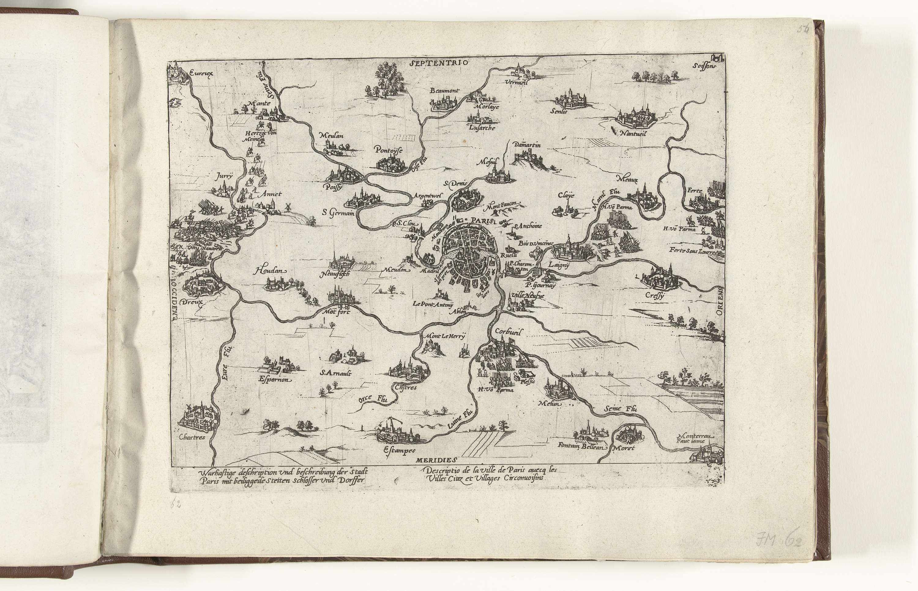 Kaart van Parijs en omgeving, 1590